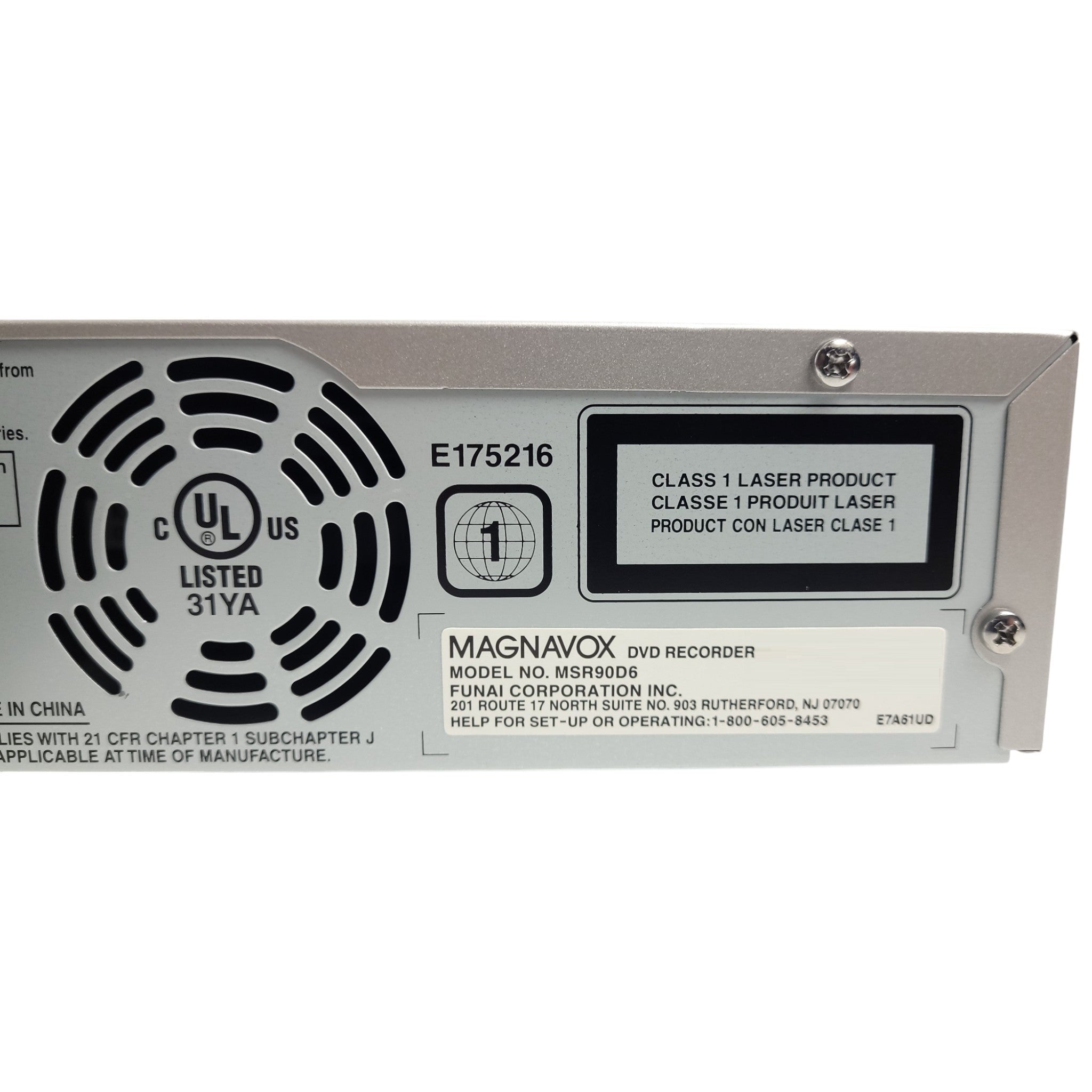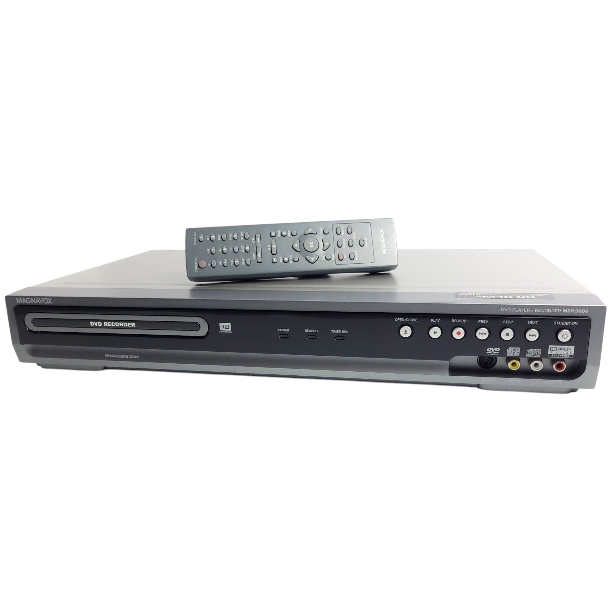 The Magnavox MSR90D6 is a reliable standalone DVD recorder designed for easy recording of TV shows, home movies, and analog video sources. With support for multiple DVD formats and progressive scan video output, it ensures smooth playback and solid recording quality. Its simple interface and front A/V inputs make it an excellent choice for converting VHS tapes or camcorder footage to digital DVDs.