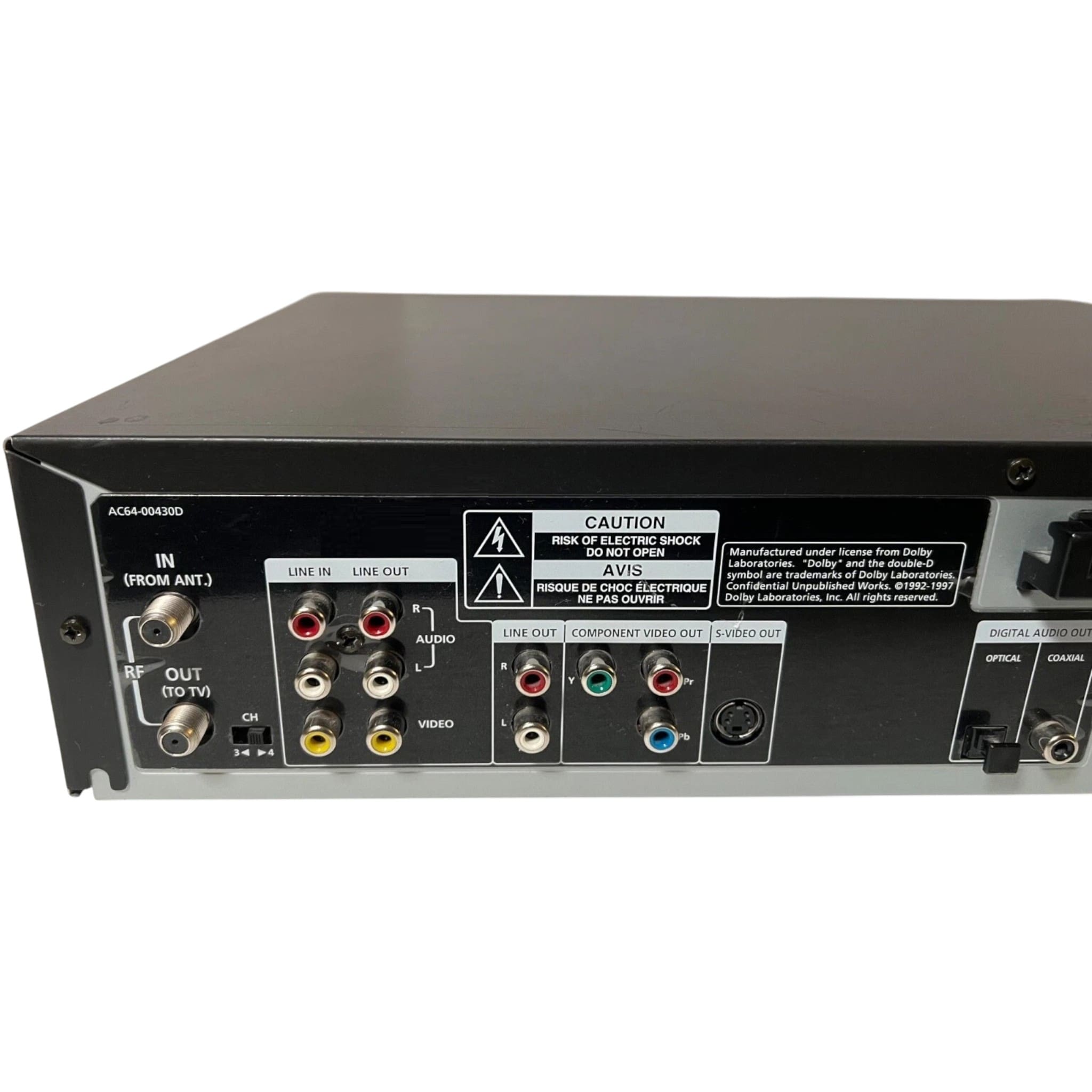 This unit is ideal for users seeking to consolidate their media playback devices, offering both VHS and DVD functionalities in a single, compact system. Its array of input and output options ensures compatibility with various audio and video setups.