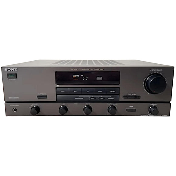 Sony TA-AV421 Stereo Integrated AV Amplifier REFURBISHED β SERVICED β RESTOREDFREE SHIPPING β 90 DAY WARRANTYπ SALE! Free shipping and 5% off at online checkout Product Description The Sony TA-AV421 is a vintage stereo amplifier built for users who want classic analog performance with flexible input options. Designed with simplicity and control in mind, it offers a clean front panel with direct-access source buttons, master volume, tone, and balance controls. It also features Dolby Surround support and a phono inputβperfect for turntable setups without needing a separate preamp. Ideal for stereo enthusiasts who want warmth, power, and vintage reliability. Key Features Approx. 100 watts per channel (stereo into 8 ohms) Front-panel bass, treble, and balance knobs Phono input for turntables (MM cartridges) DSP mode and Dolby Surround support Input buttons for Video, Tape, CD, Tuner, and Phono Separate Input Balance and Speaker A/B selector Large master volume knob and headphone jack Specifications Model: Sony TA-AV421 Power Output: Approx. 100W per channel @ 8 ohms (stereo) Inputs: Phono, CD, Tuner, Tape, Video Outputs: Speaker A/B, Headphone, Tape Rec Tone Controls: Bass, Treble, Balance, Input Balance Surround Sound: Dolby Surround DSP Phono Stage: Yes (for MM cartridges) Dimensions & Weight Dimensions (W Γ H Γ D): 17.0" Γ 5.5" Γ 13.0" Weight: 17.5 lbs Condition Renewed β Fully Serviced:This unit has been professionally refurbished, thoroughly cleaned, and tested. Worn components have been replaced to ensure optimal performance. Restored to excellent condition for both appearance and function. Warranty This product is backed by a 90-Day Warranty Guarantee. Your product is eligible for a replacement or refund within 90 days of receipt if it does not work as expected. What's in the Box Sony TA-AV421 Integrated Amplifier Power Cable Instruction Manual Remote Control