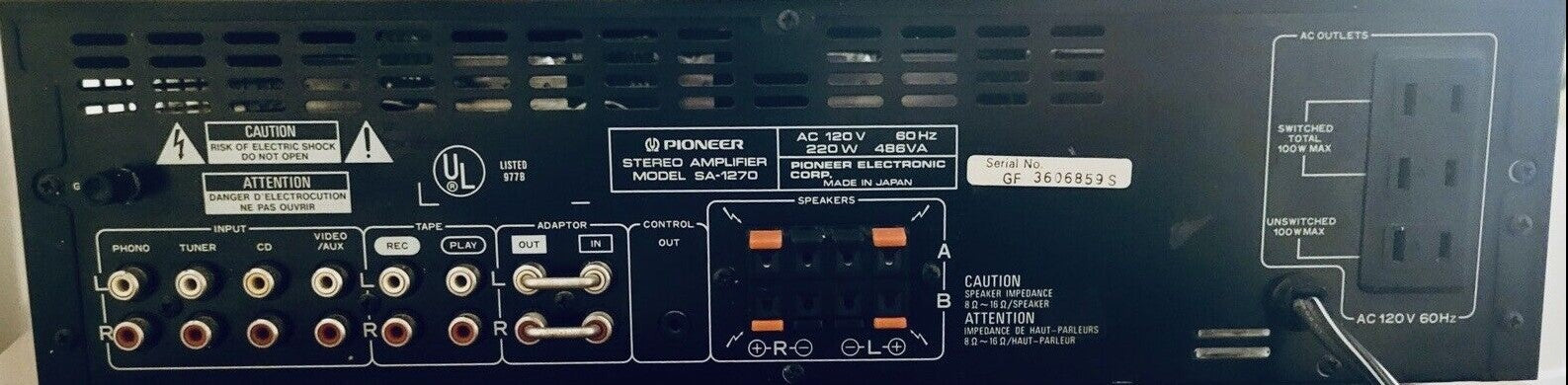 Pioneer SA-1270 Stereo 105 Watt Per Channel Integrated Amplifier + EQ