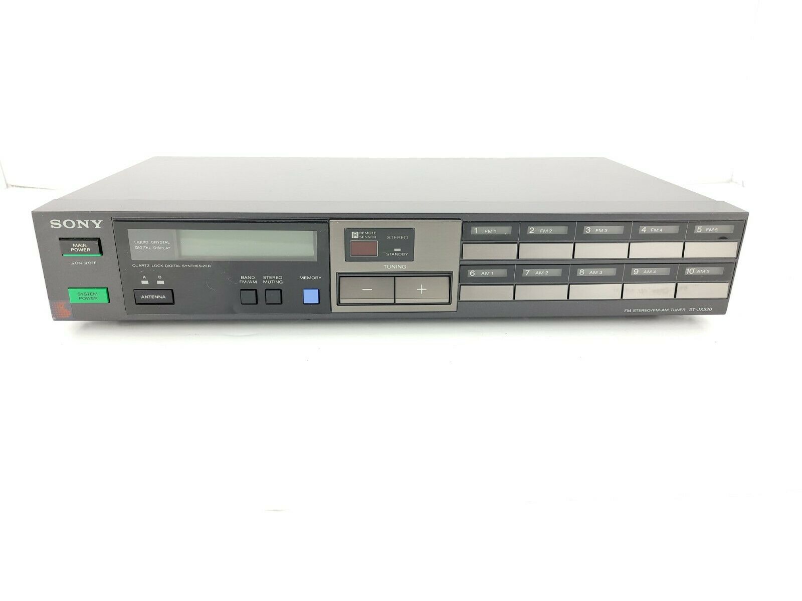 A hi-fi AM/FM stereo Quartz Lock Digital Synthesizer tuner with a LCD digital Band/Frequency display, housed in a black metal case.