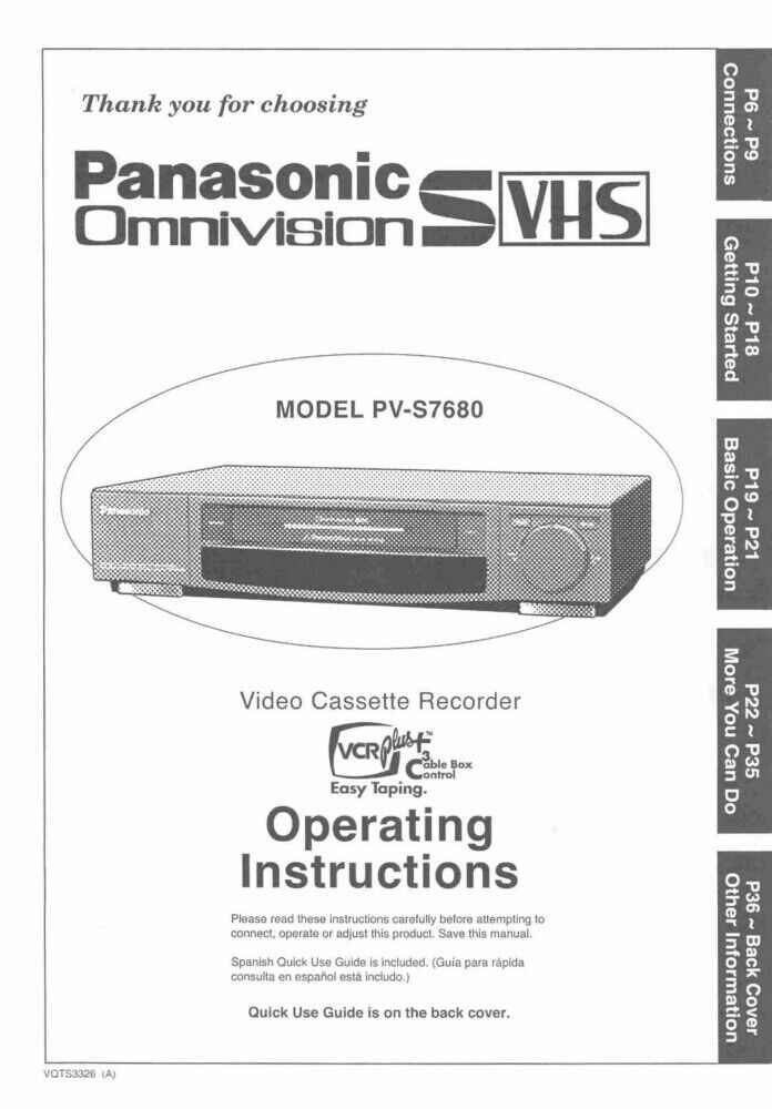 Panasonic PV-S7680 VCR User Instruction Manual