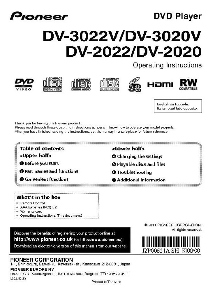Pioneer DV-2022 DVD Player Owners Manual
