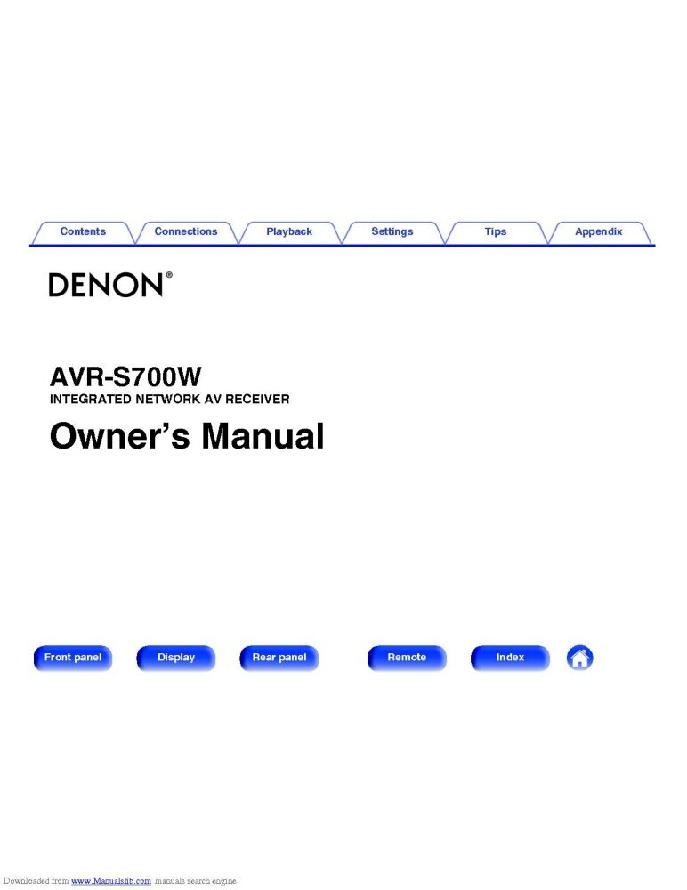 Denon AVR S700W Receiver Amplifier Owners Manual