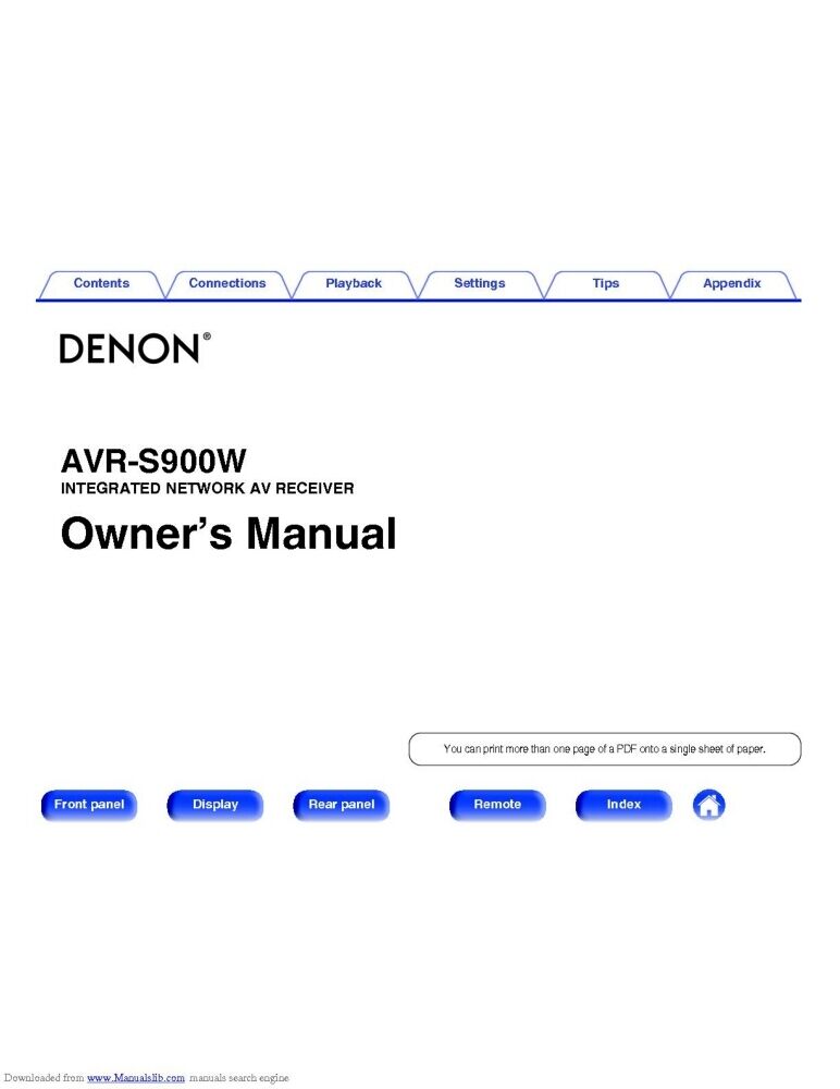 Denon AVR S900W Receiver Amplifier Owners Manual