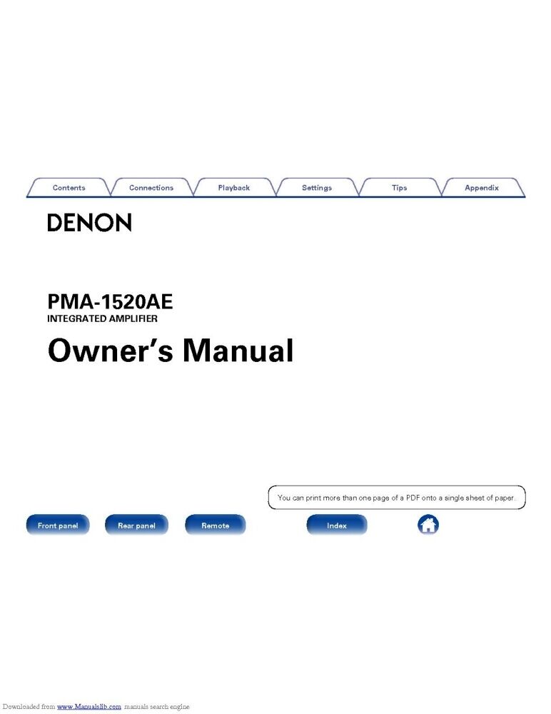 Denon PMA 1520AE Receiver Amplifier Owners Manual