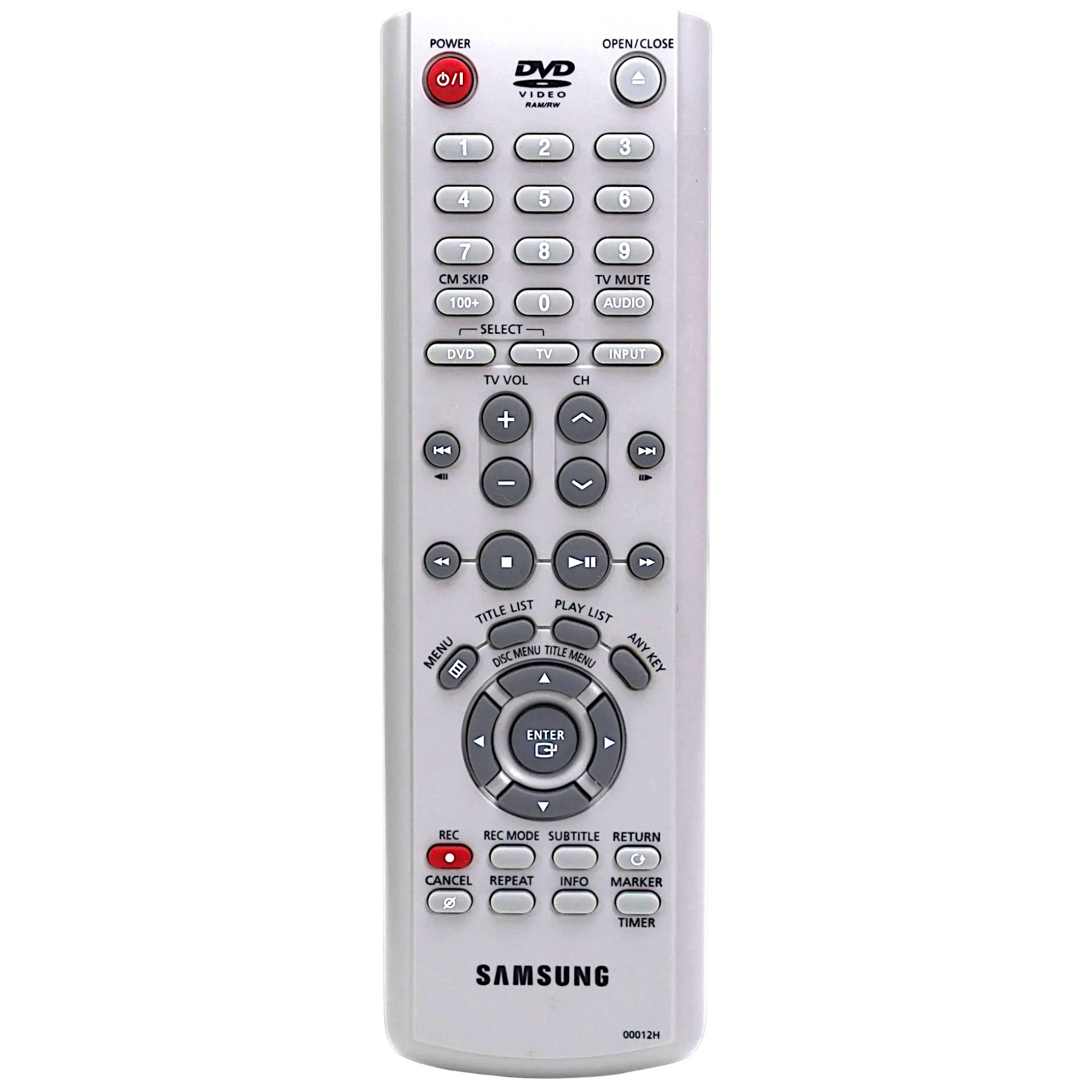 The Samsung DVD-R120 is a dedicated DVD recorder built for recording TV programs and external video sources directly to DVD. Unlike standard DVD players, this unit can write/record discs and is especially valued for its DVD-RAM compatibility and flexible recording modes. It’s a great choice for archiving home video, recording from cable boxes, or capturing content from other analog sources.