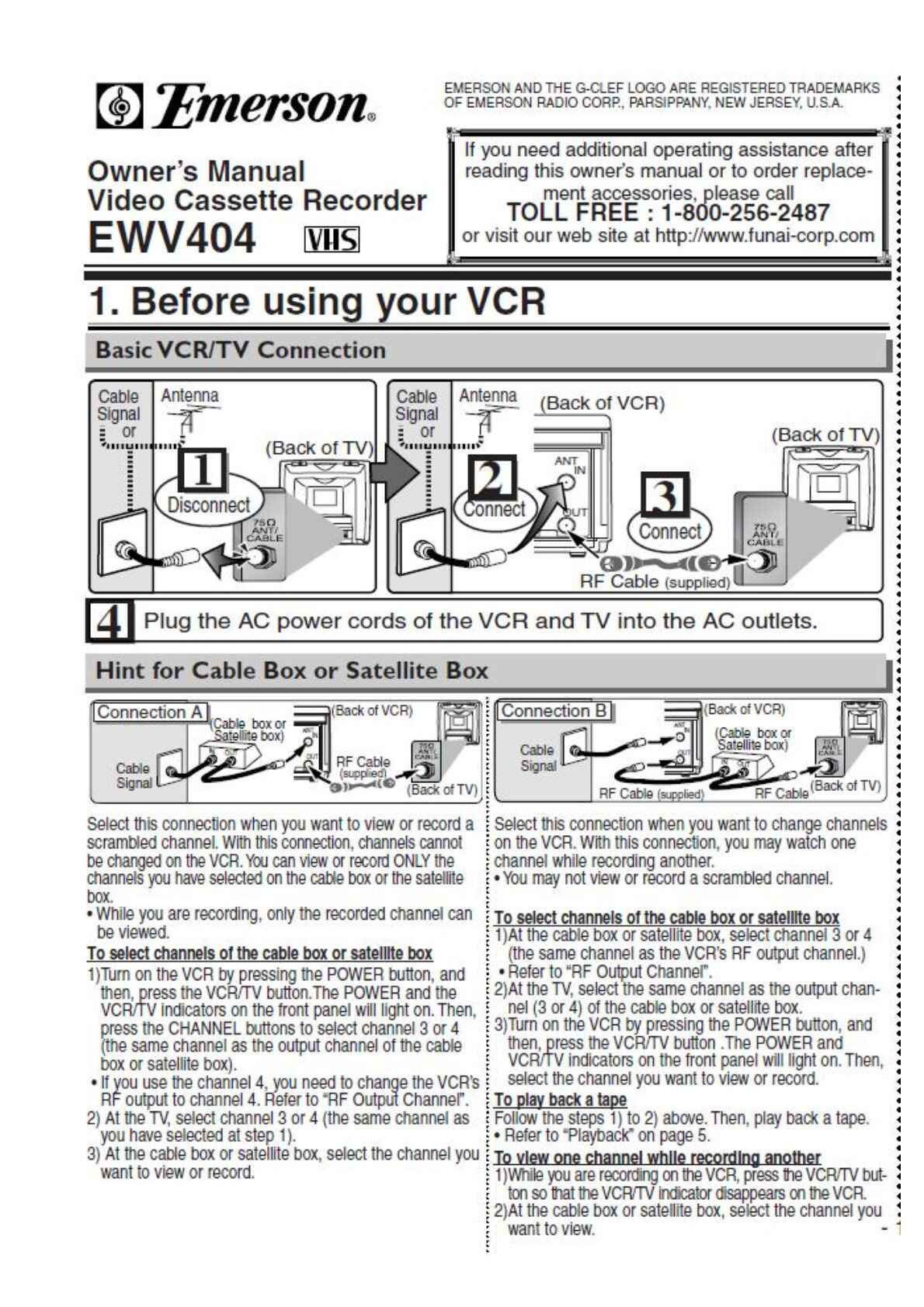 Emerson EWV404 VCR Owners Manual