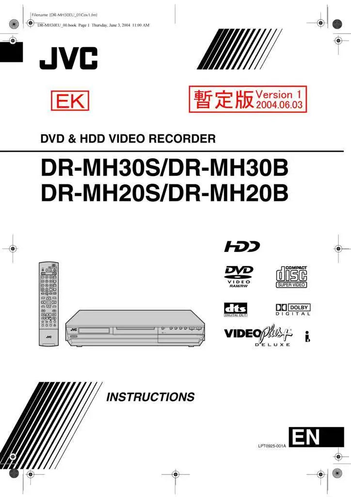 JVC DR-MH20B DR-MH20S DR-MH30B DR-MH30S DVD Recorder Owners Manual