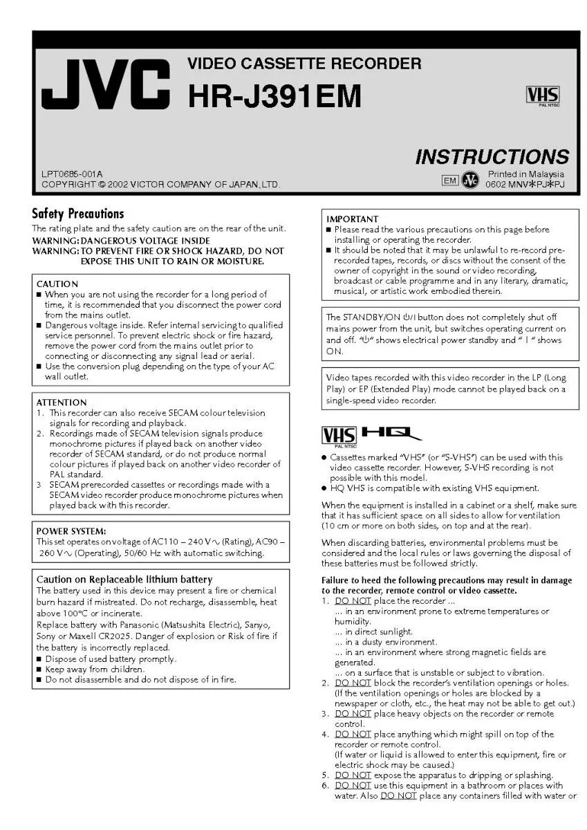 Hard copy printed manual. This JVC VCR manual will ship within 24 hours of purchase. Read more