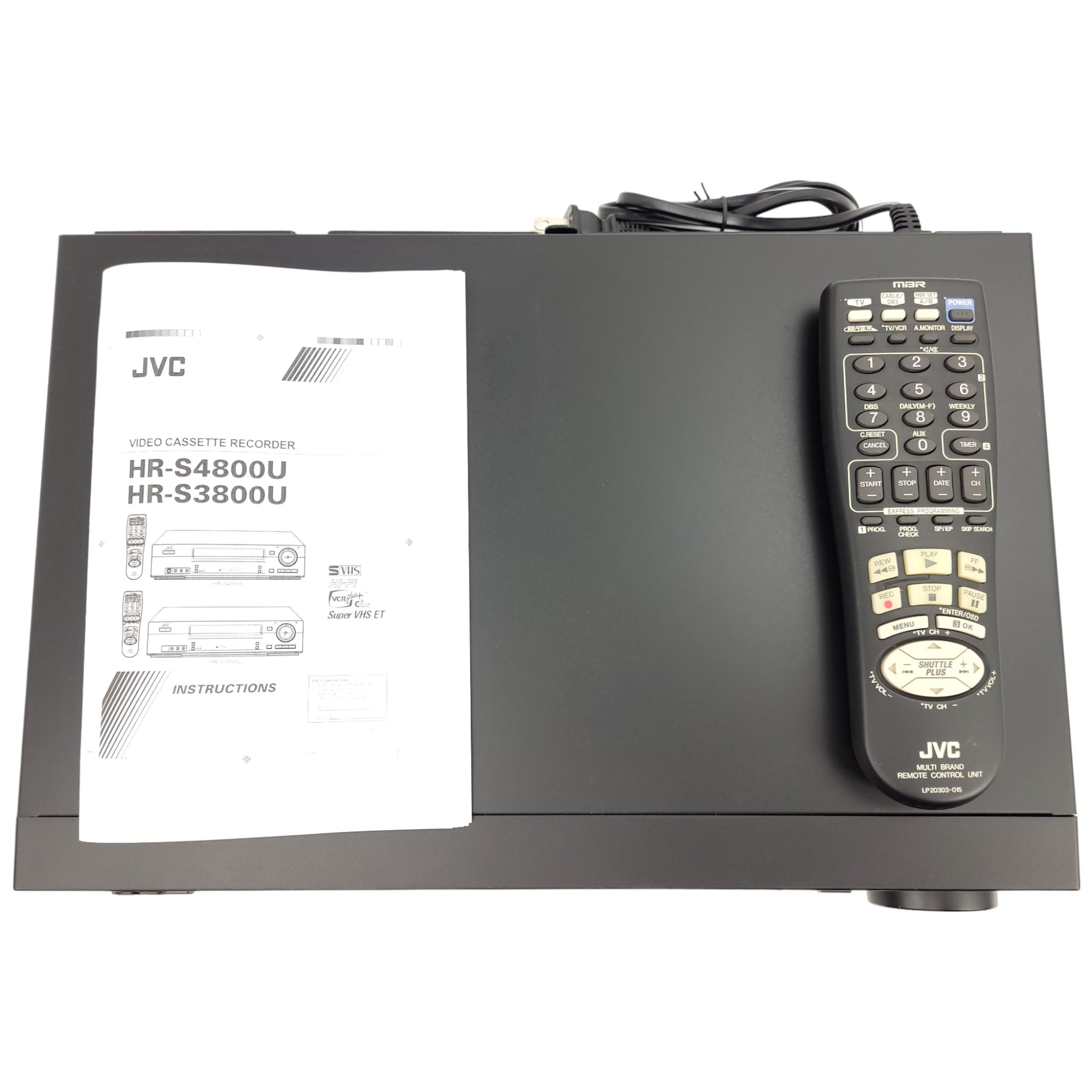 JVC HR-S3800 Super SVHS HiFi VCR, Remote, RCA Cables, Manual
