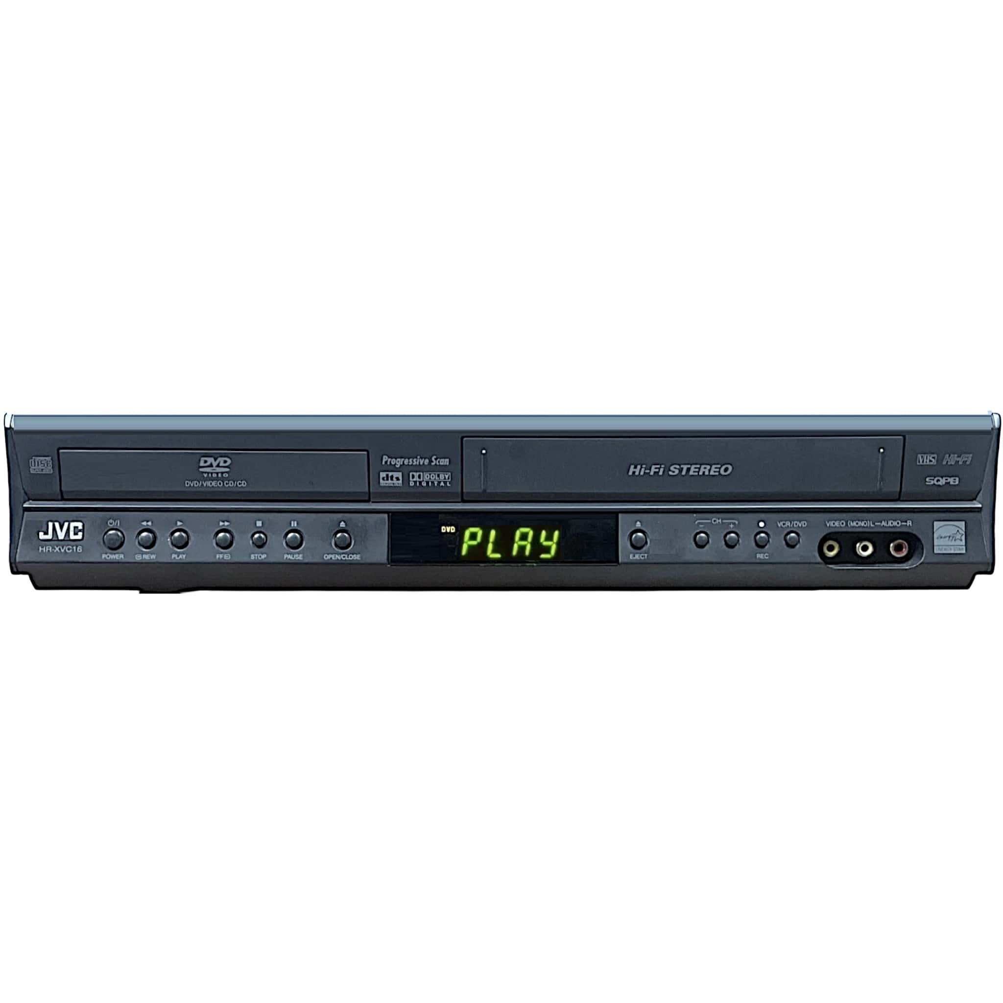 The JVC HR-XVC16BU is a versatile DVD/VCR combo player that lets you enjoy both modern DVDs and classic VHS tapes in one compact unit. This high-performance combo supports a wide variety of disc formats and delivers crisp, stable VHS playback with 4-head Hi-Fi stereo. With features like Progressive Scan video, front A/V inputs for easy camcorder or game console connection, and digital audio output for enhanced sound, itβs an excellent choice for archiving, playback, or daily viewing.