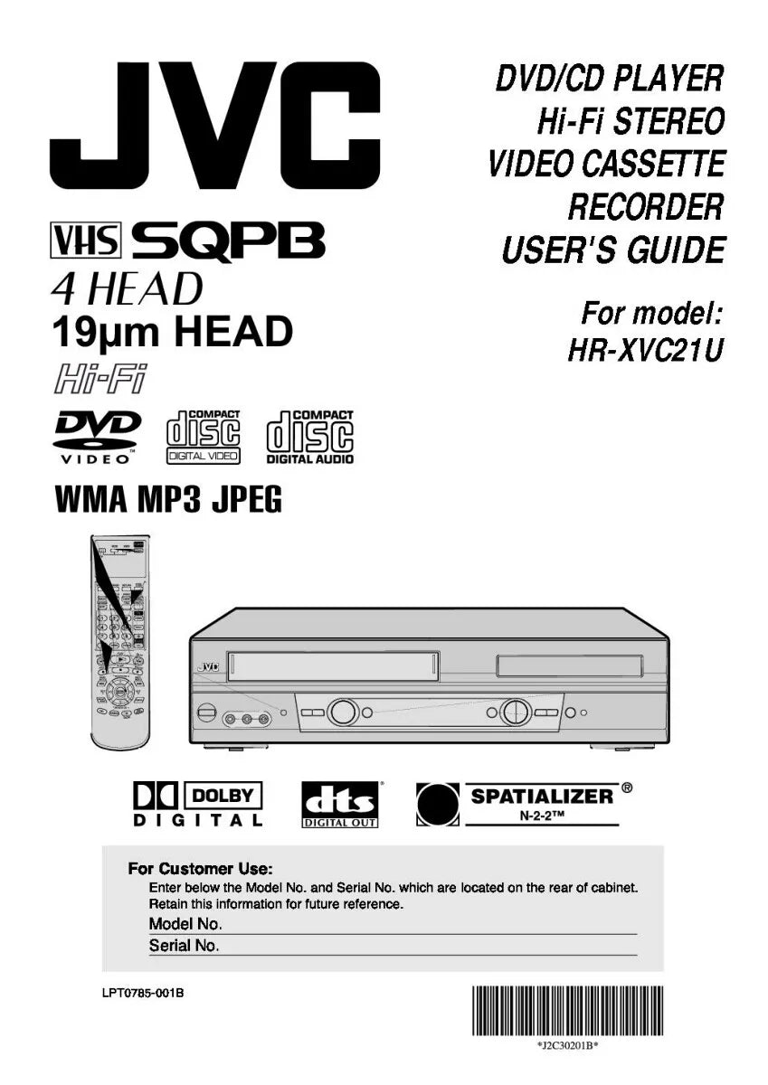 JVC HR-XVC21U VCR DVD Owners Instruction Manual