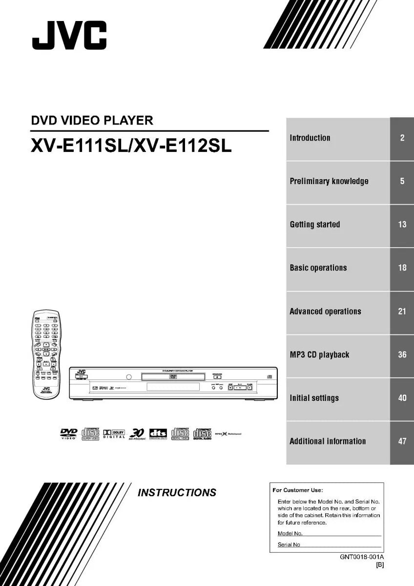 JVC XV-E111SL XV-E112SL DVD Player Owners Instruction Manual