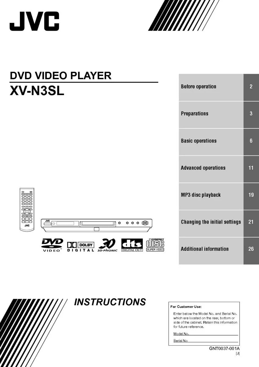 JVC XV-N3SL DVD Player Owners Instruction Manual