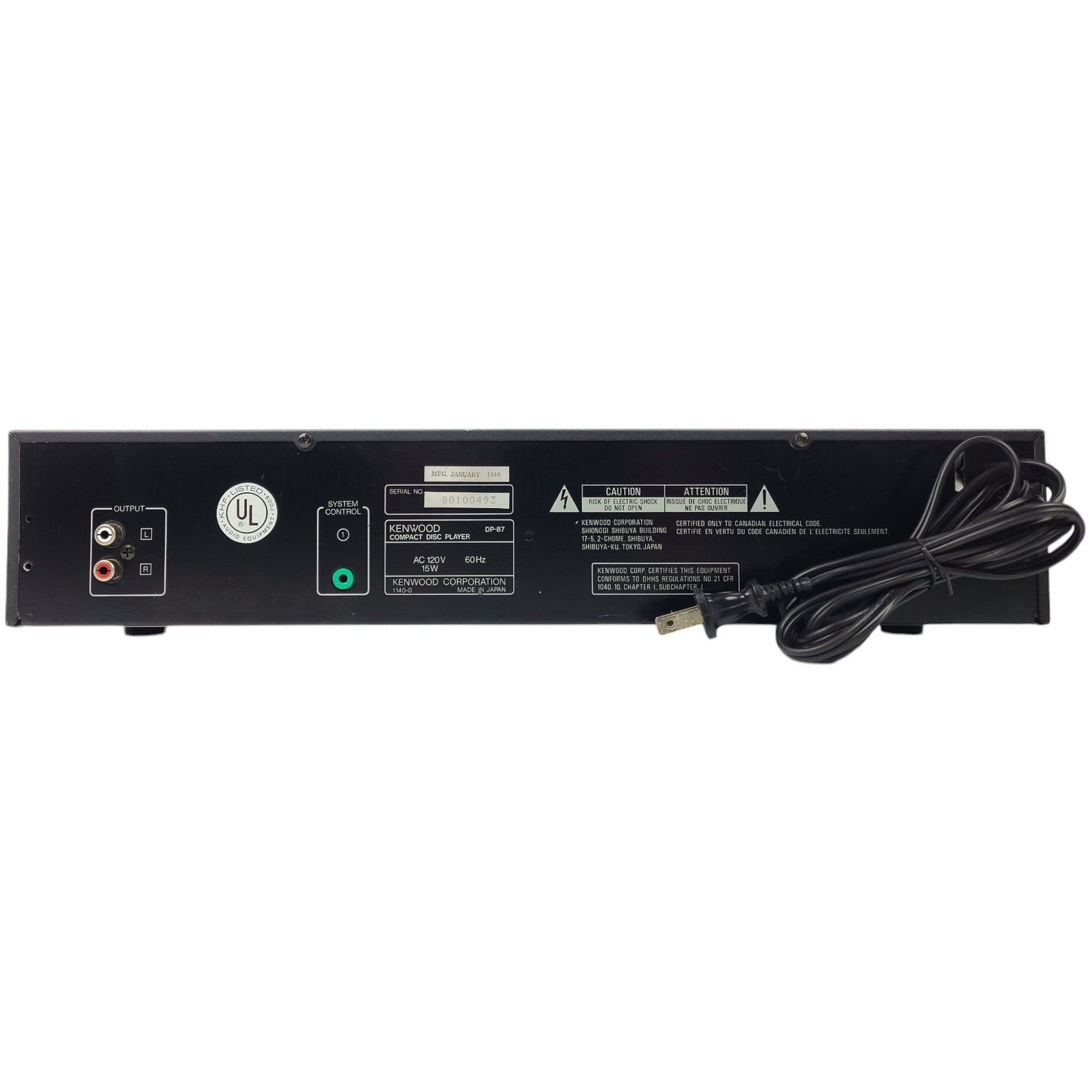 The Kenwood DP-87 is a high-quality CD player designed for audiophiles who seek precise and clear sound reproduction. It features advanced digital-to-analog conversion technology, providing enhanced audio clarity and minimal distortion. With a robust build, user-friendly controls, and features like programmable playback and repeat modes, the DP-87 ensures an enjoyable and reliable listening experience. Its sleek design makes it a great addition to any home audio setup.