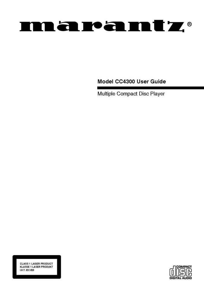 Hard copy printed manual. This Marantz CD Player manual will ship free within 24 hours of purchase. Read more