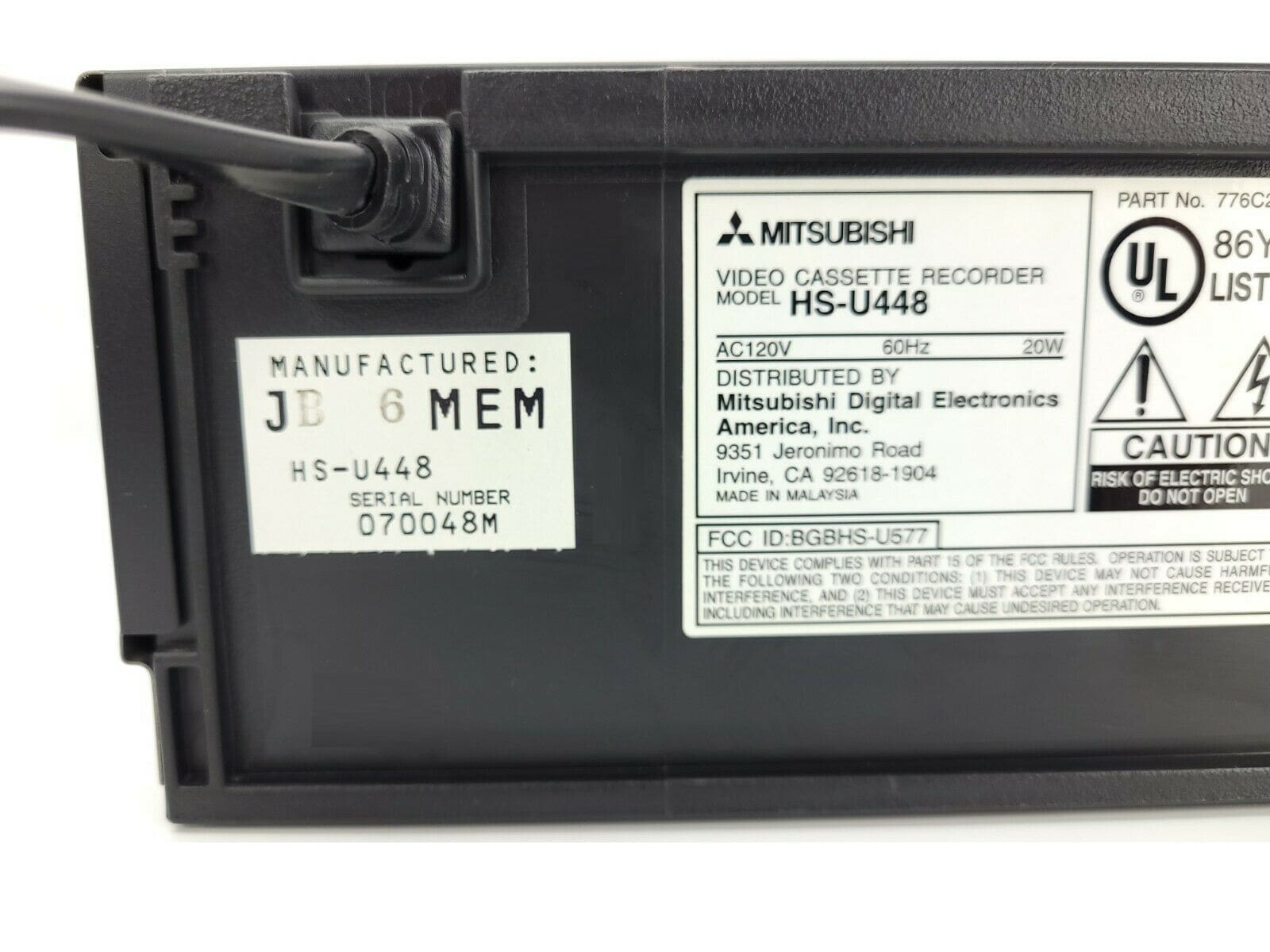 Mitsubishi HS-U448 VCR, Original Remote, RCA Cable, Manual