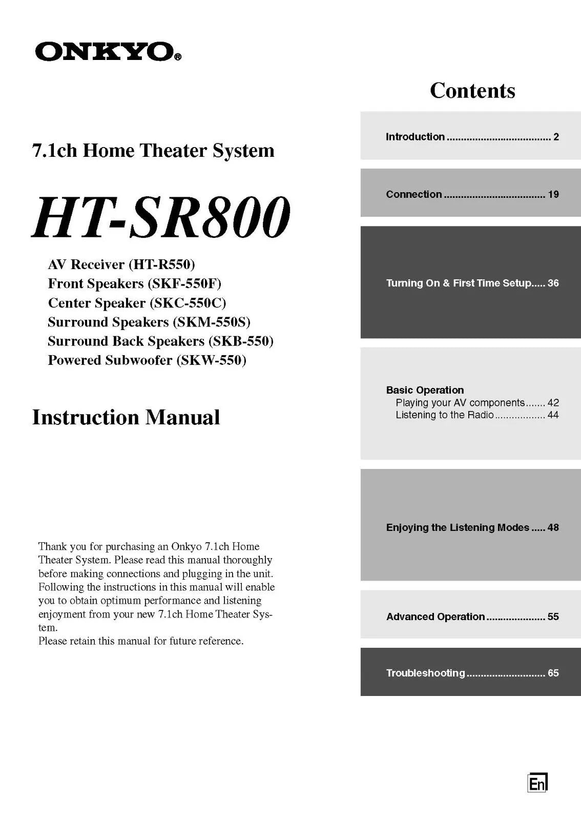 Onkyo HT-SR800 Home Theater System Receiver Owners Manual