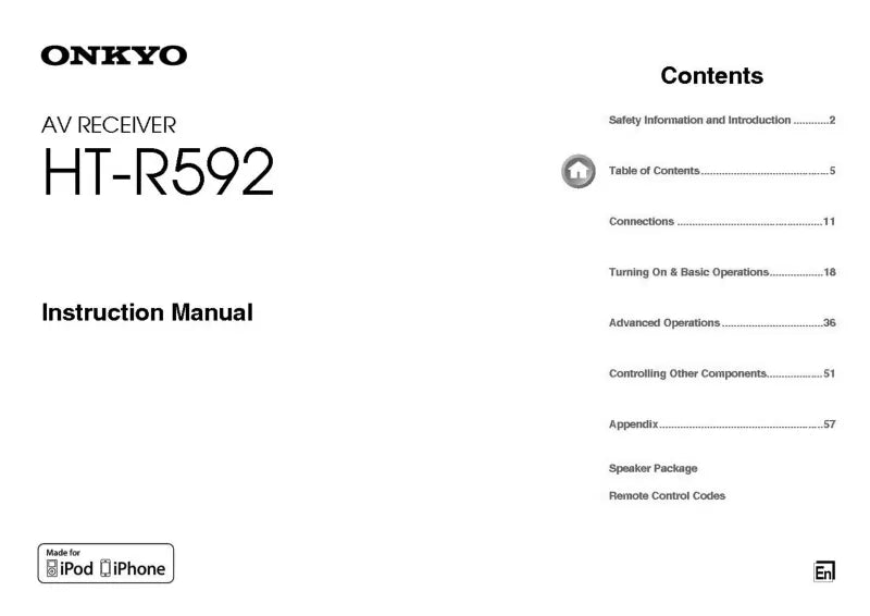 Onkyo Integra HT-R592 Receiver Owners Instruction Manual