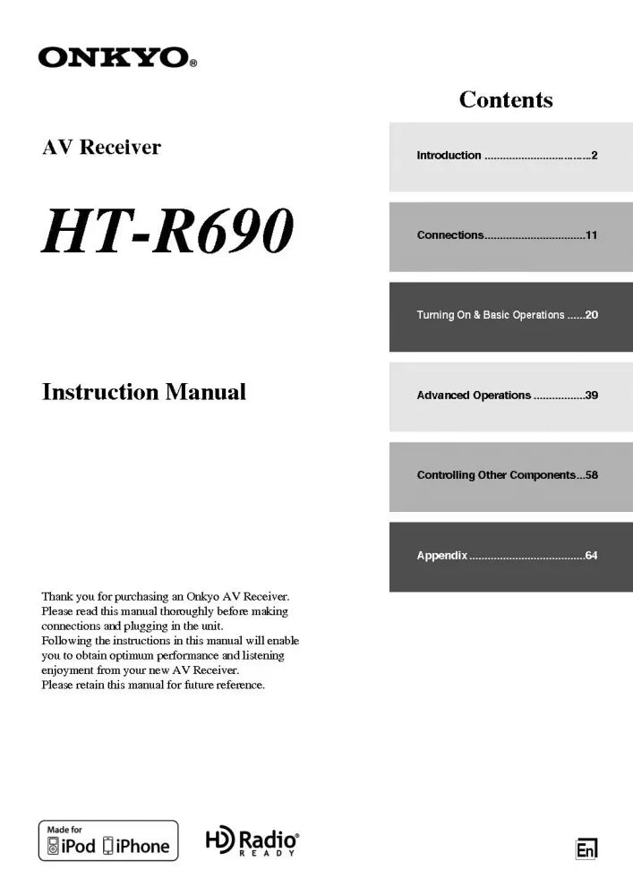 Onkyo Integra HT-R690 Receiver Owners Instruction Manual