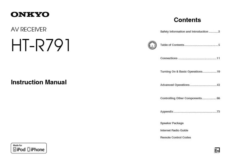 Onkyo Integra HT-R791 Receiver Owners Instruction Manual