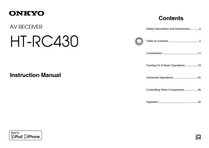 Onkyo Integra HT-RC430 Receiver Owners Instruction Manual