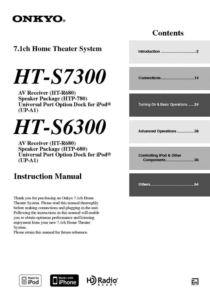 Onkyo Integra HT-S6300 Receiver Owners Instruction Manual
