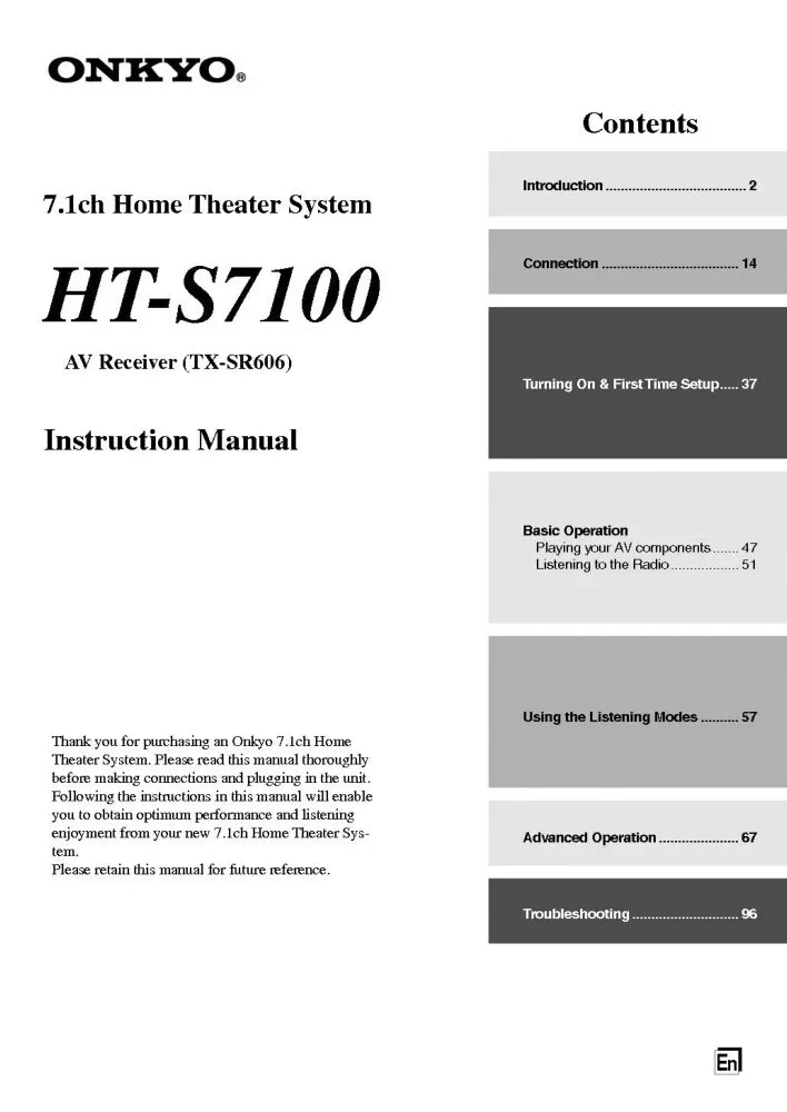Onkyo Integra HT-S7100 Receiver Owners Instruction Manual