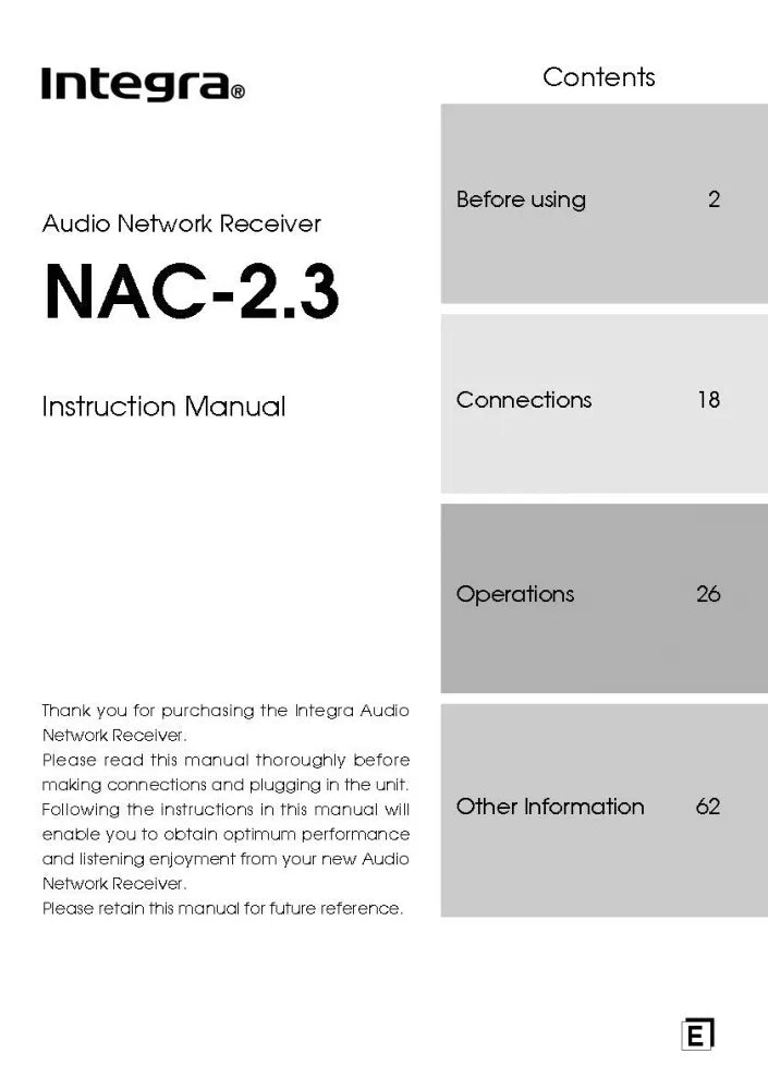 Onkyo Integra NAC-2.3 Receiver Owners Instruction Manual