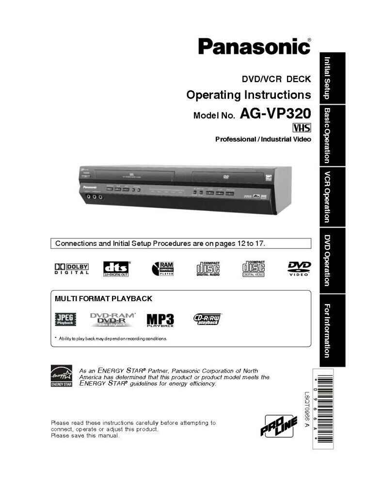 Panasonic AG-VP320 DVD VCR Combo User Instruction Manual