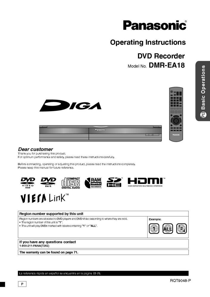 Panasonic DMR-EA18 DVD Recorder Owners Instruction Manual