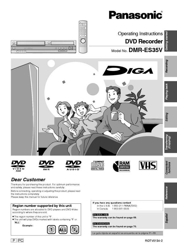 Panasonic DMR-ES35V DVD Recorder Owners Instruction Manual