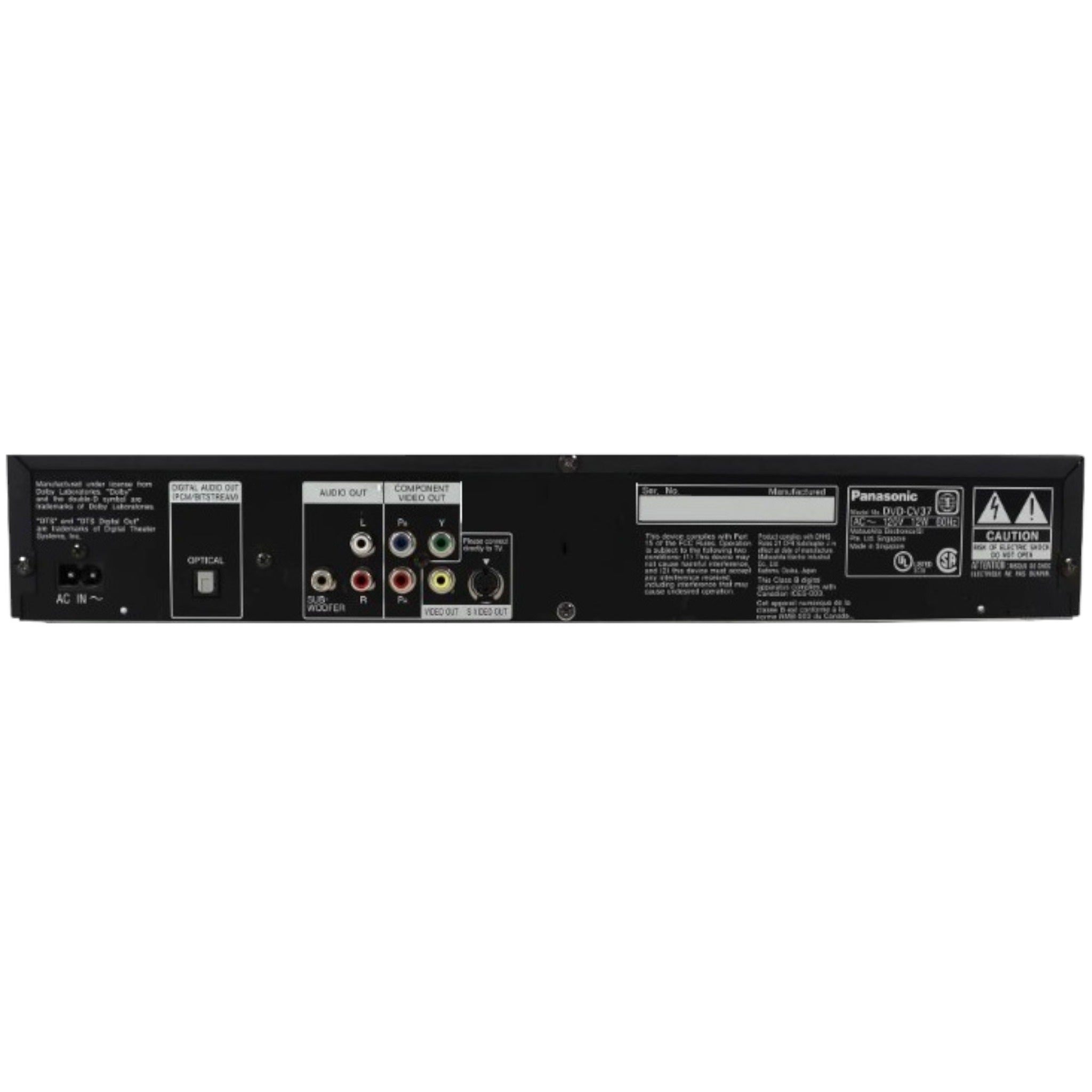 The Panasonic DVD-CV37 is a slim DVD player that can play five discs at once. It has a carousel that allows you to play five DVDs without having to move them. The rear panel has component outputs, composite, and S-Video. For optimal audio, you can connect the optical audio cable to a speaker and the subwoofer cable to a subwoofer. The Panasonic DVD-CV37 also has surround sound.