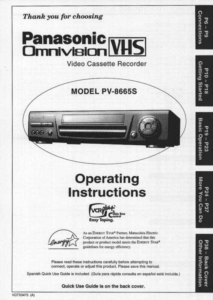 Hard copy printed manual. This Panasonic VCR manual will ship within 24 hours of purchase. Read more