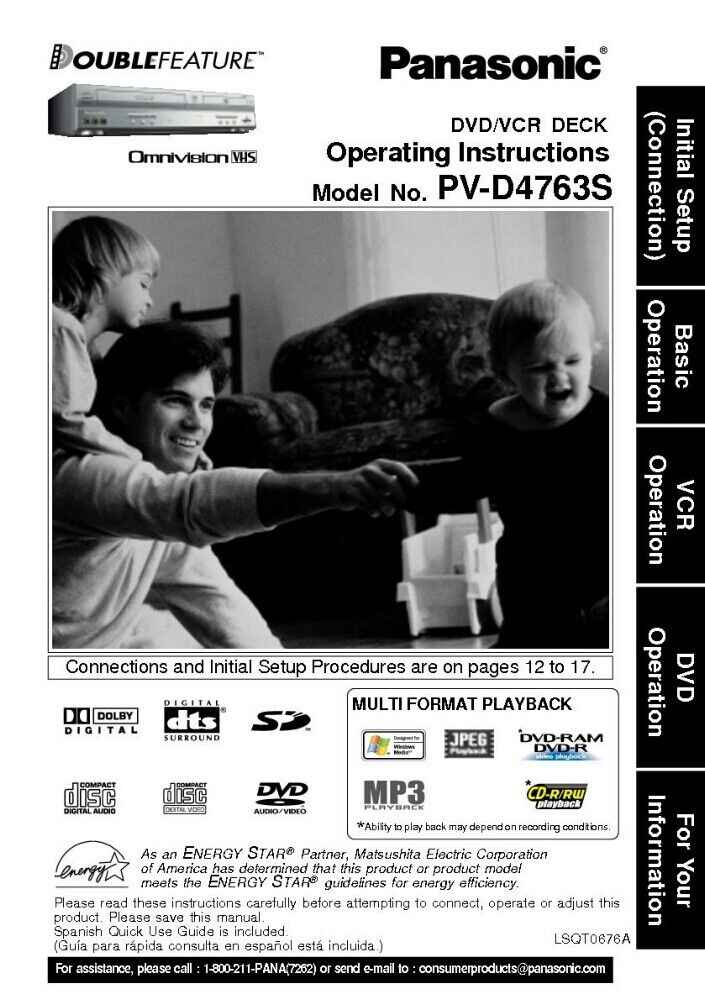 Panasonic PV-D4763S VCR DVD User Instruction Manual