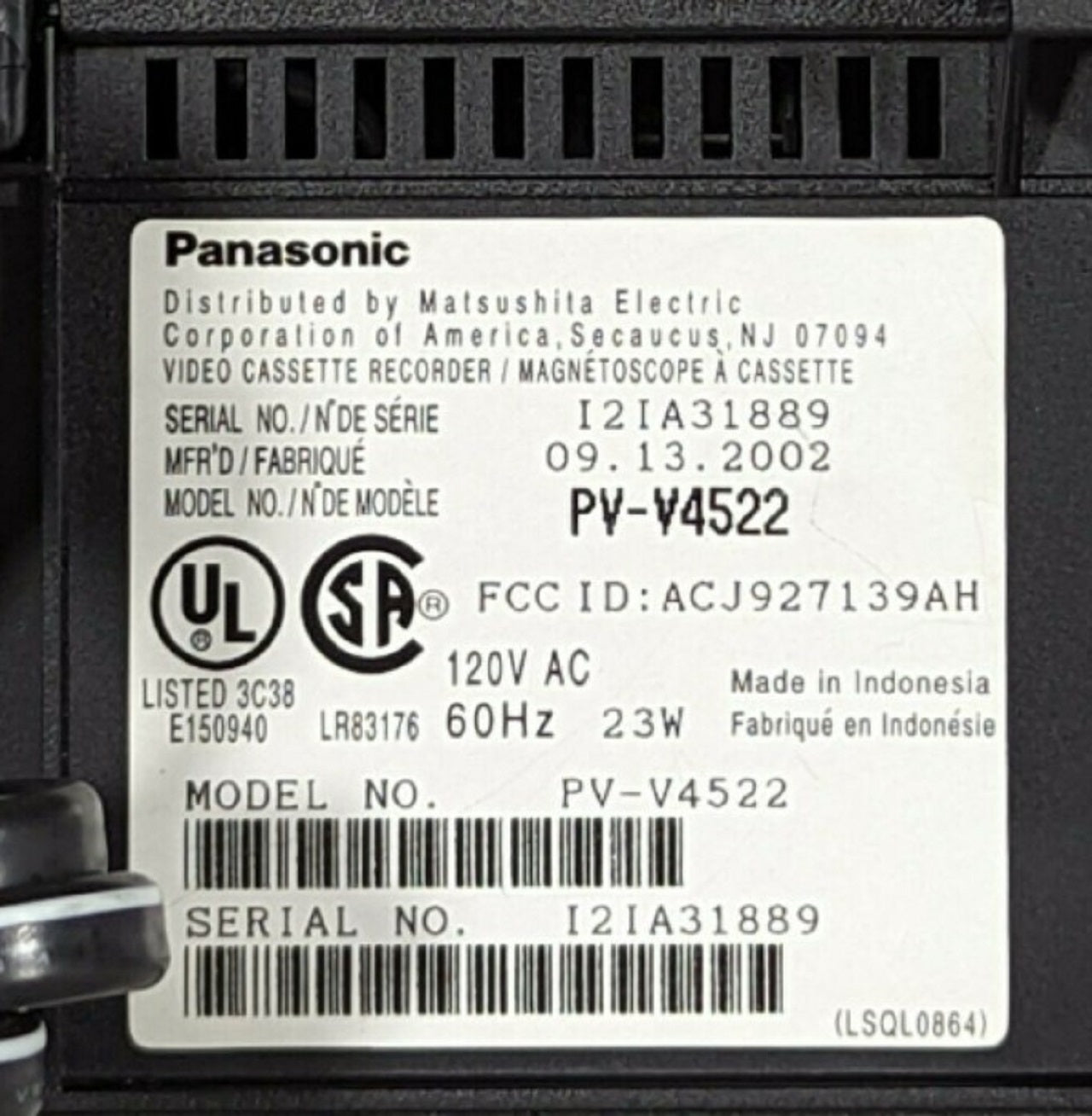 - Panasonic VCR