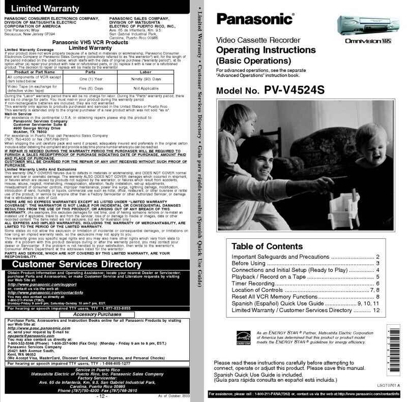 Hard copy printed manual. This Panasonic VCR manual will ship within 24 hours of purchase. Read more