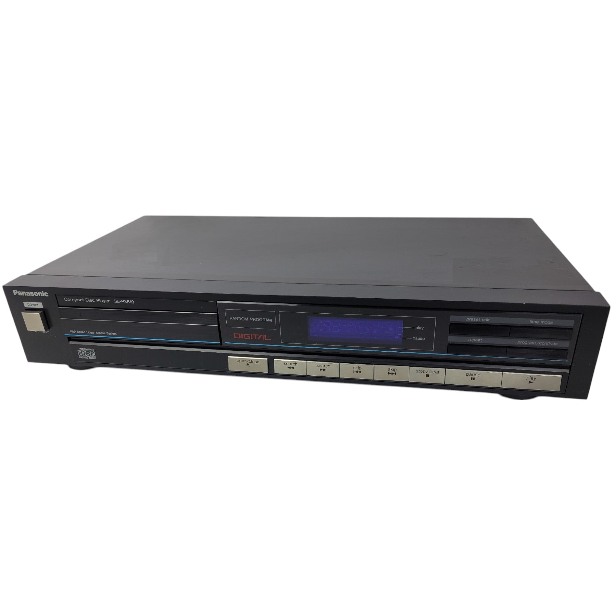 The Panasonic SL-P3510 is a compact, high-quality CD player released in the early 1990s. It was designed to deliver clear audio performance with a variety of features catering to audiophiles and casual listeners alike. It is a part of Panasonic's line of reliable and well-regarded audio equipment.