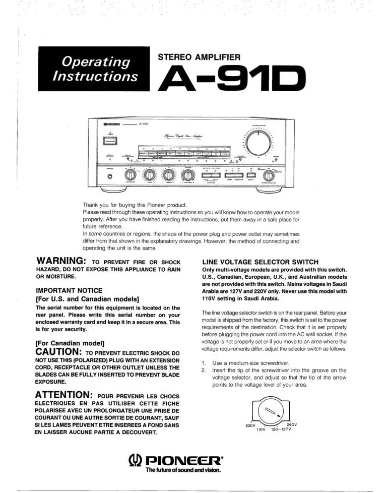 Hard copy printed manual. This Pioneer Amplifier manual will ship within 24 hours of purchase. Read more