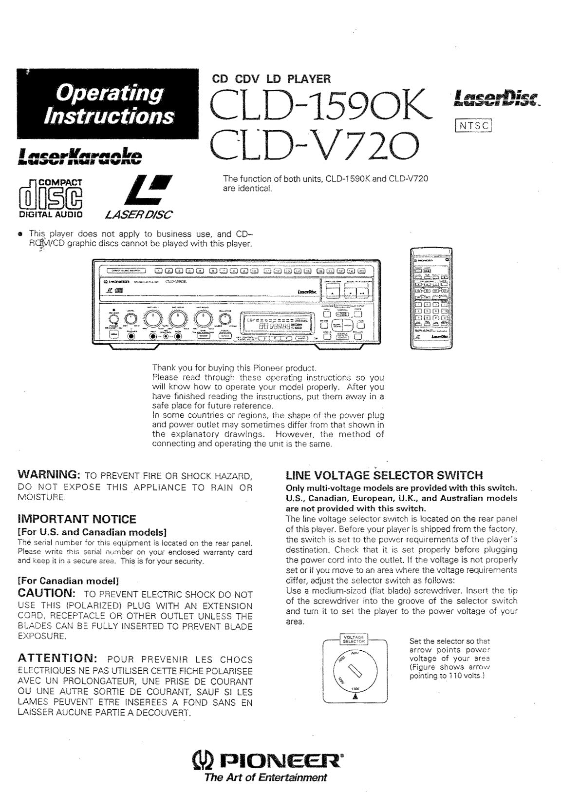 PIONEER CLD-1590K Laser Disc Player Owners Instruction Manual