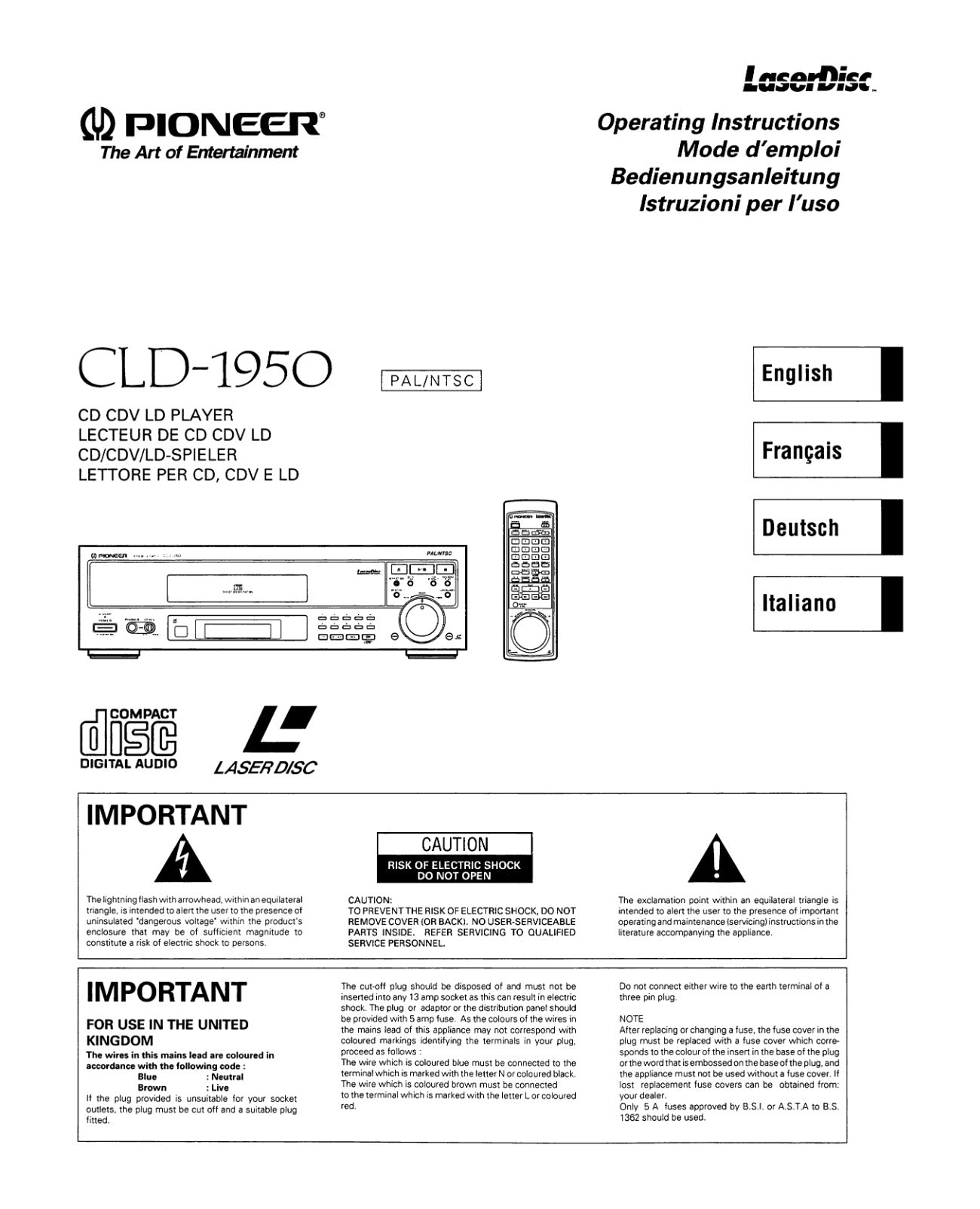 PIONEER CLD-1950 Laser Disc Player Owners Instruction Manual
