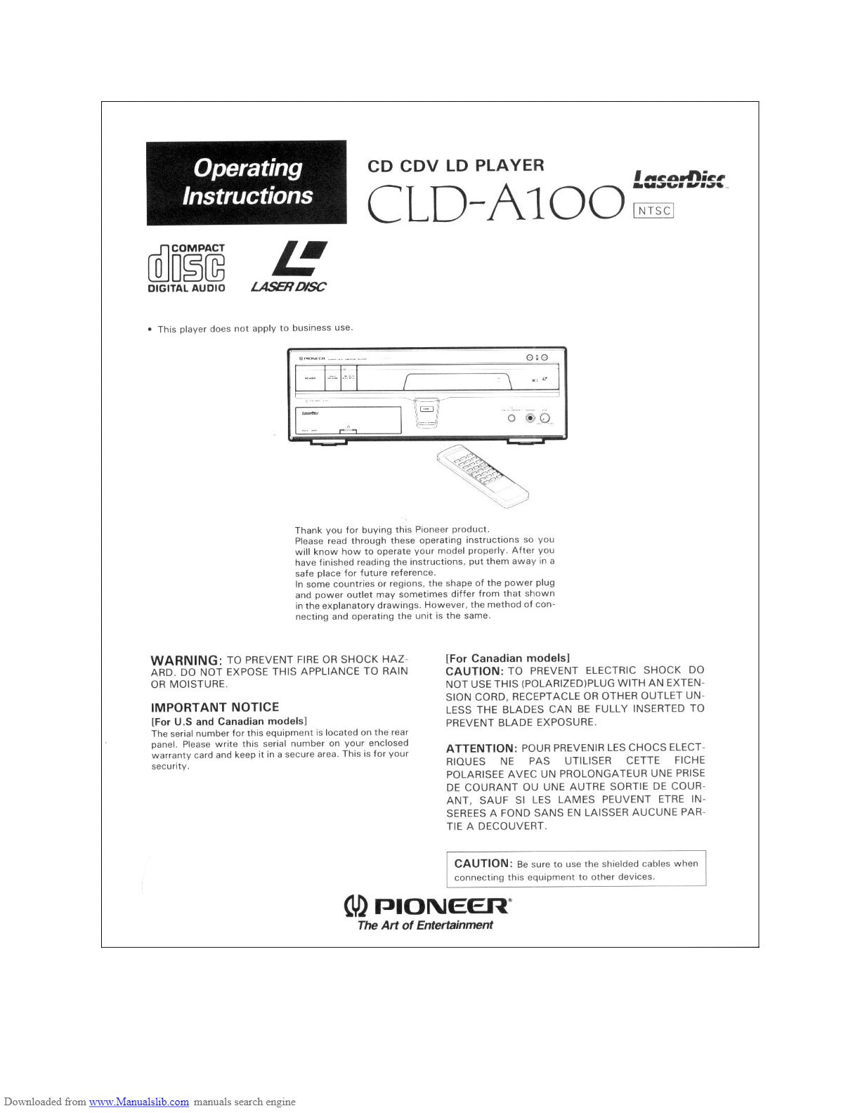 PIONEER CLD-A100 Laser Disc Player Owners Instruction Manual