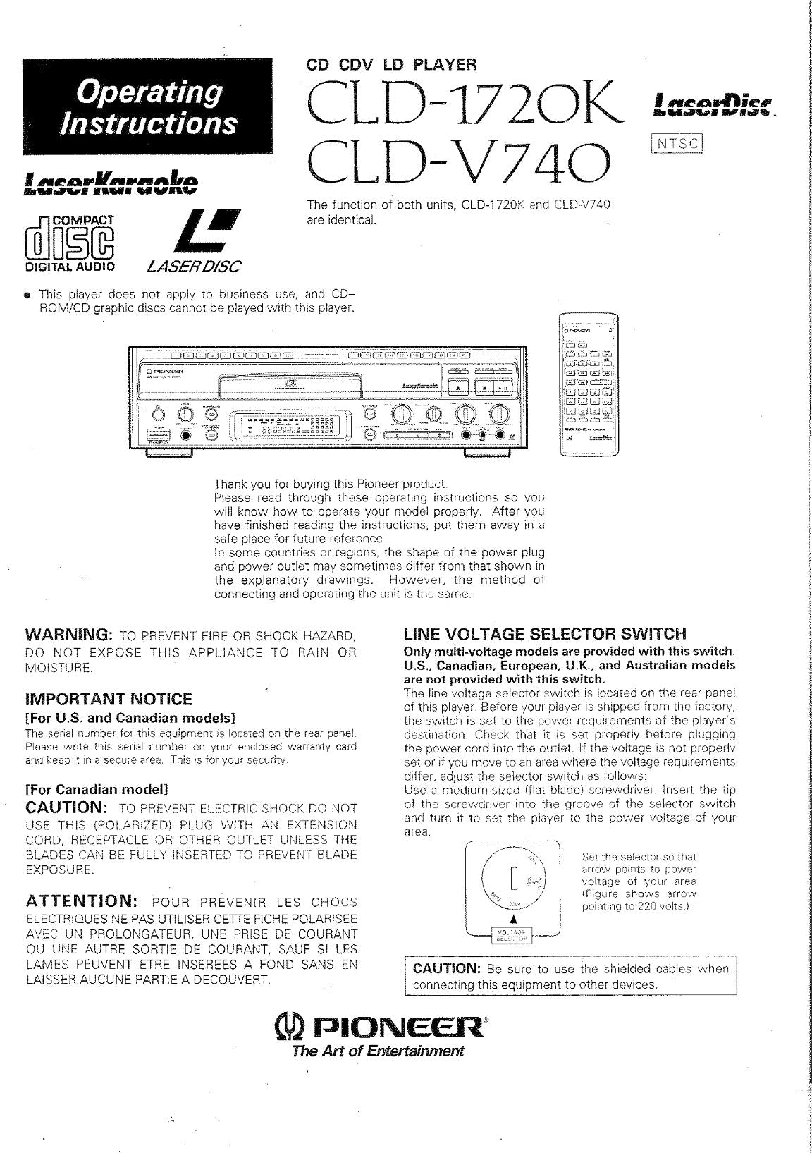 PIONEER CLD-V740 Laser Disc Player Owners Instruction Manual