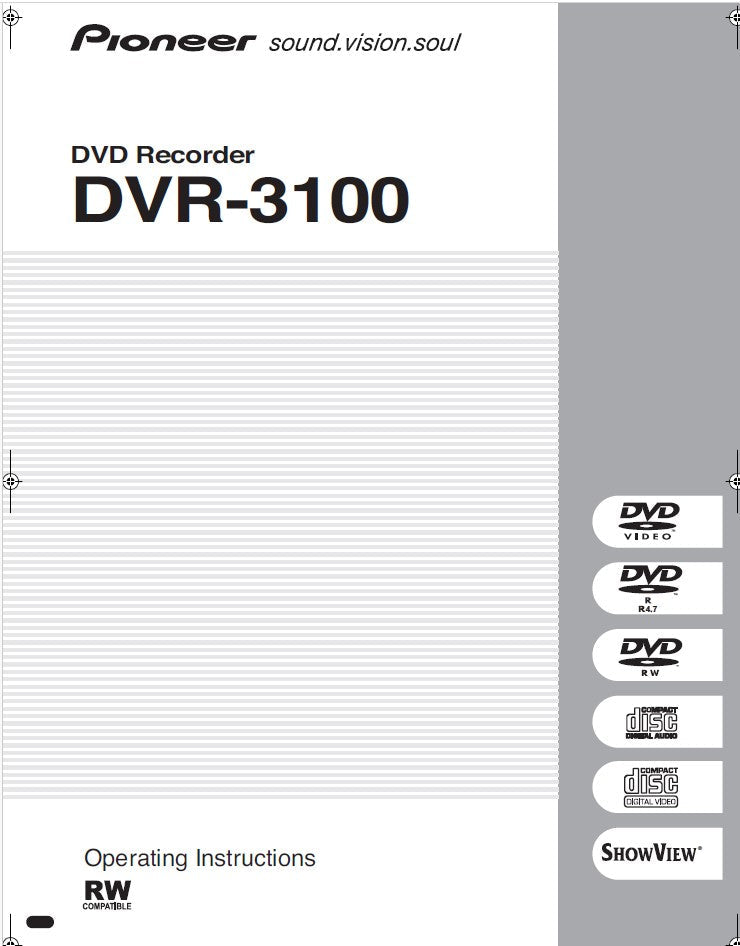 Pioneer DVR-3100 DVD Recorder Owners Manual