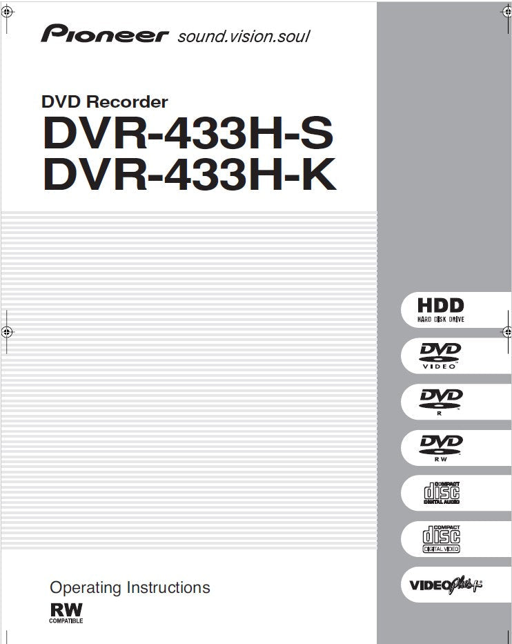 Pioneer DVR-433H-S DVD Recorder Owners Manual