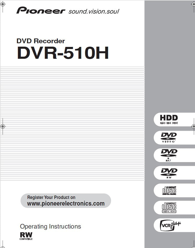 Pioneer DVR-510H DVD Recorder Owners Manual
