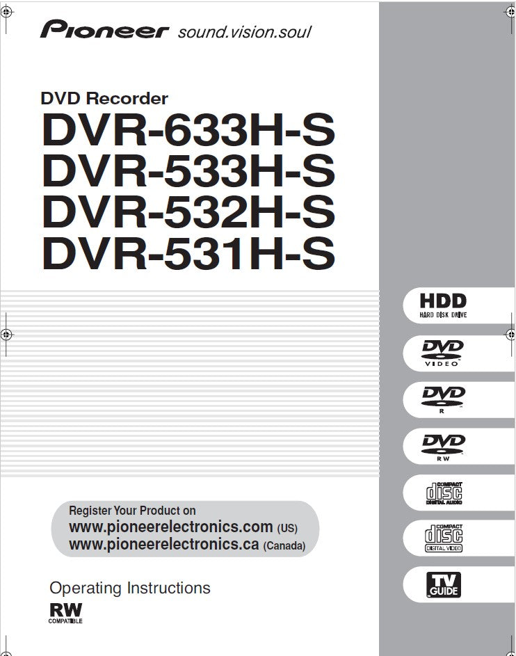 Hard copy printed manual. This Pioneer DVD Recorder manual will ship within 24 hours of purchase. Read more