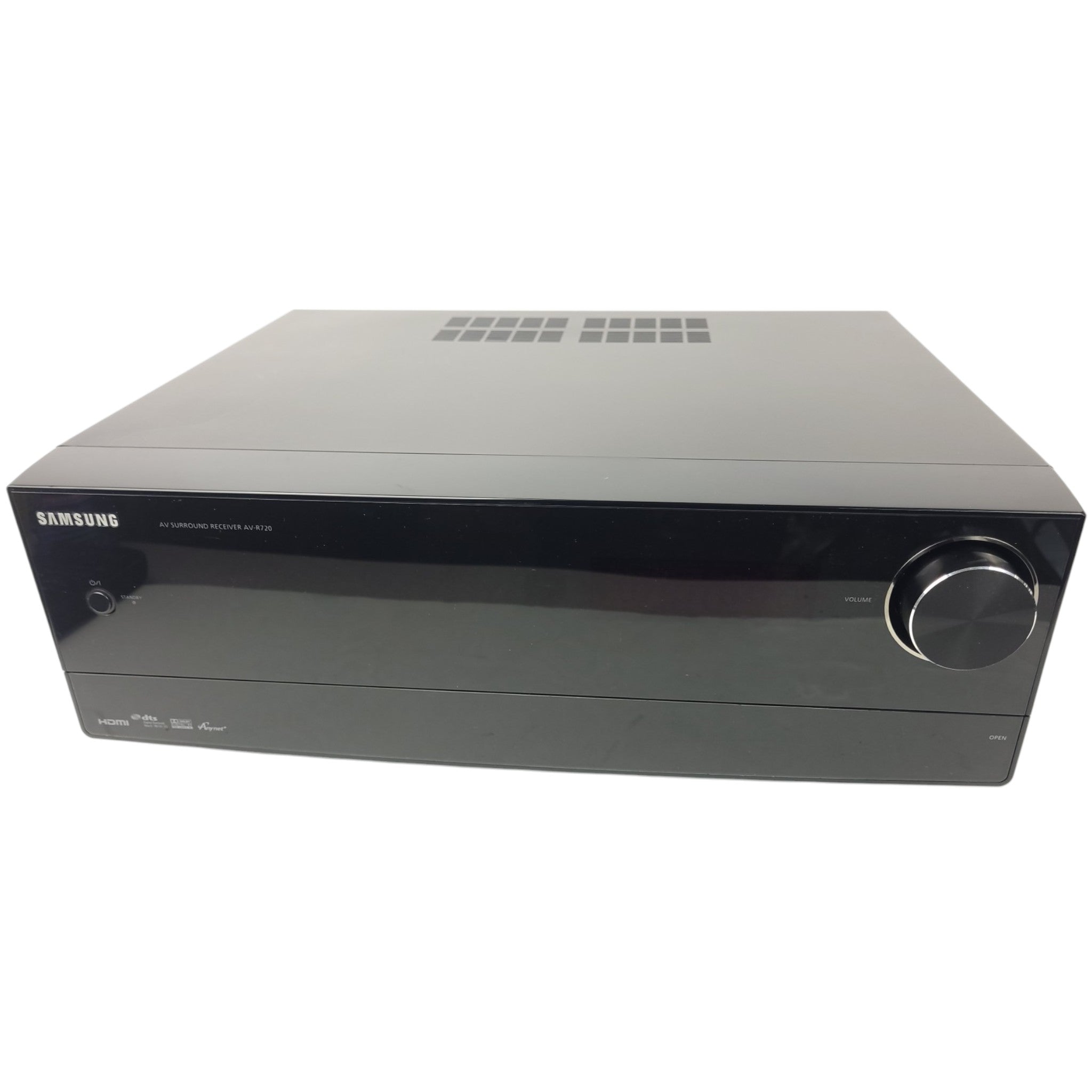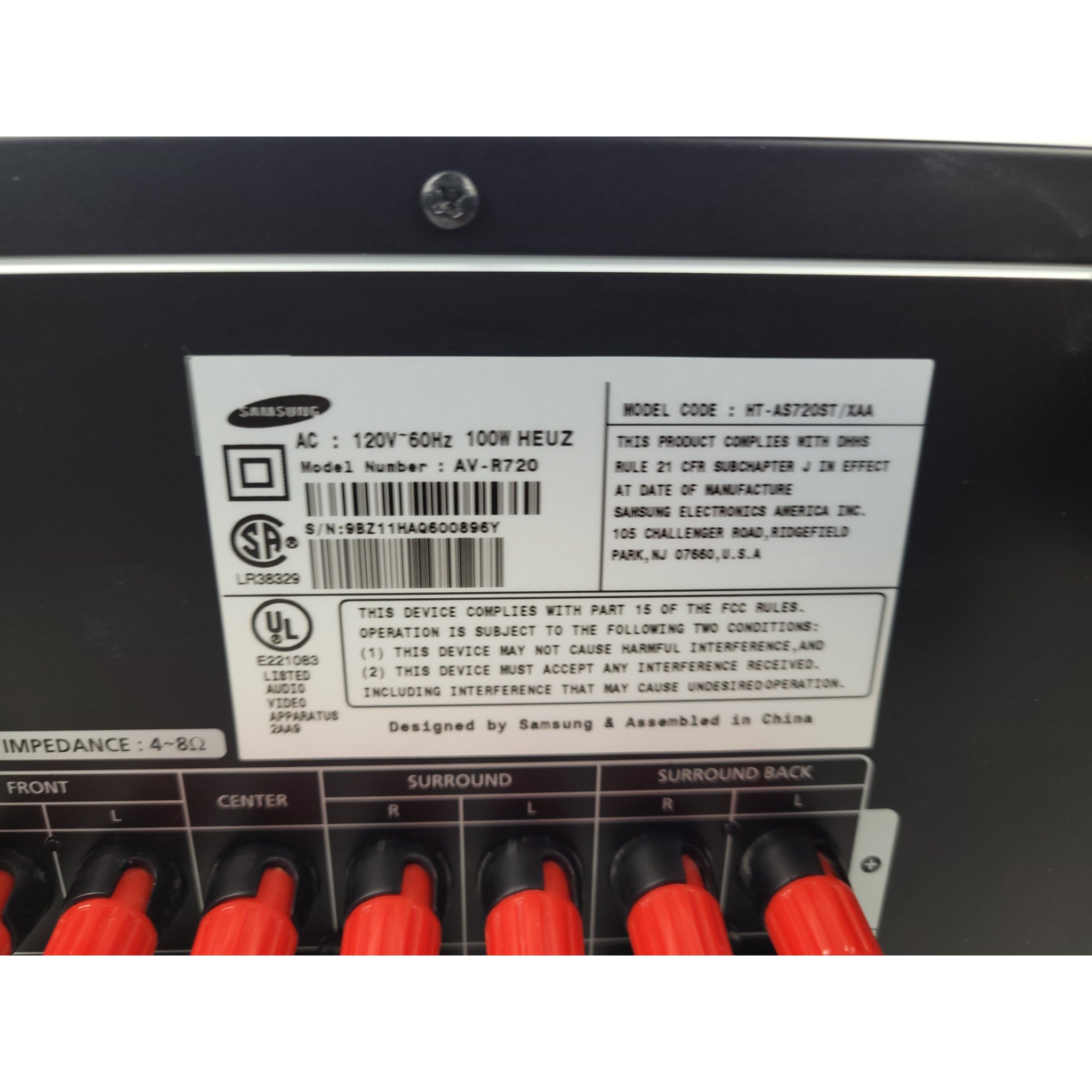 The Samsung HT-AS720 is a 5.1-channel AV receiver designed to deliver immersive surround sound for home theater systems. It provides 100 watts per channel into 4-ohm speakers across front, center, and surround channels. The receiver supports audio formats including Dolby Digital, Dolby Pro Logic II, Dolby Pro Logic IIx, Dolby Digital EX, DTS, DTS-ES, DTS Neo:6, and DTS 96/24. Connectivity options feature HDMI inputs and outputs, USB ports, and wireless capabilities for seamless integration with various devices.
