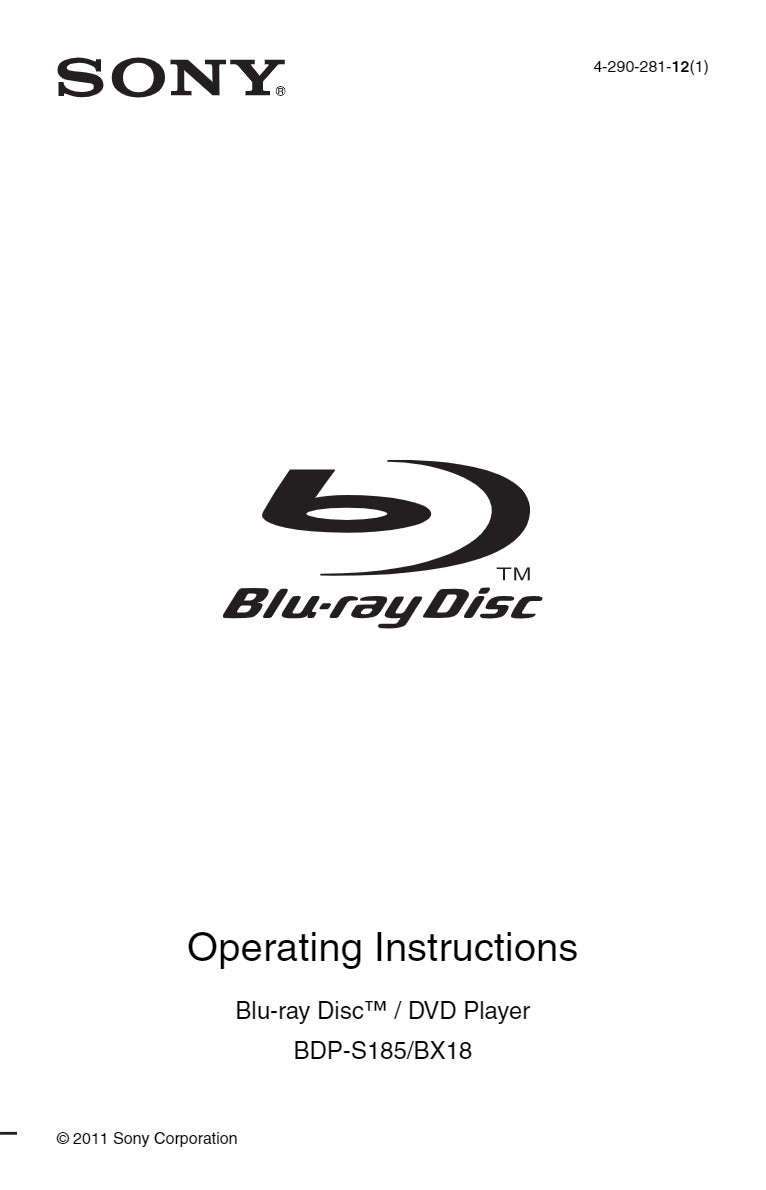 Sony BDP-S185 Blu-ray Player Owners Manual